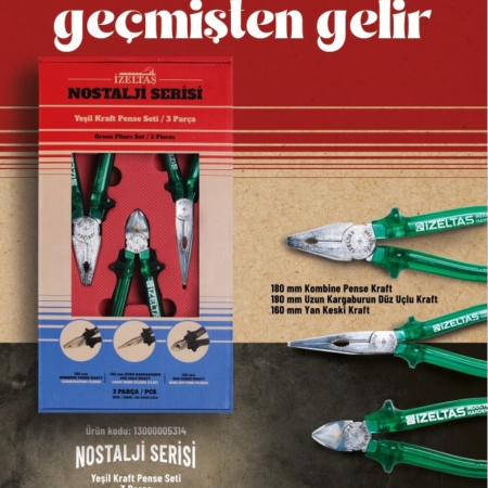 • İzeltaş 13000005134 Nostalji Serisi Kraft Pense Seti 3 Parça