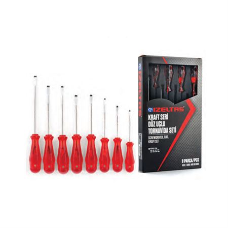 • İzeltaş 4100 00 8108 Kraft Düz Tornavida Seti 8 Parça